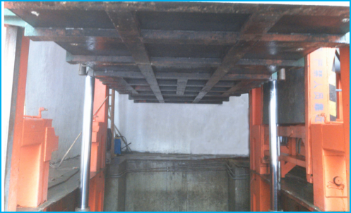 6設備采用兩側(cè)油缸舉升,舉升力度大,機體舉升時采用8個平穩(wěn)、高強度耐磨滾輪導向,舉升平穩(wěn)、安全可靠。